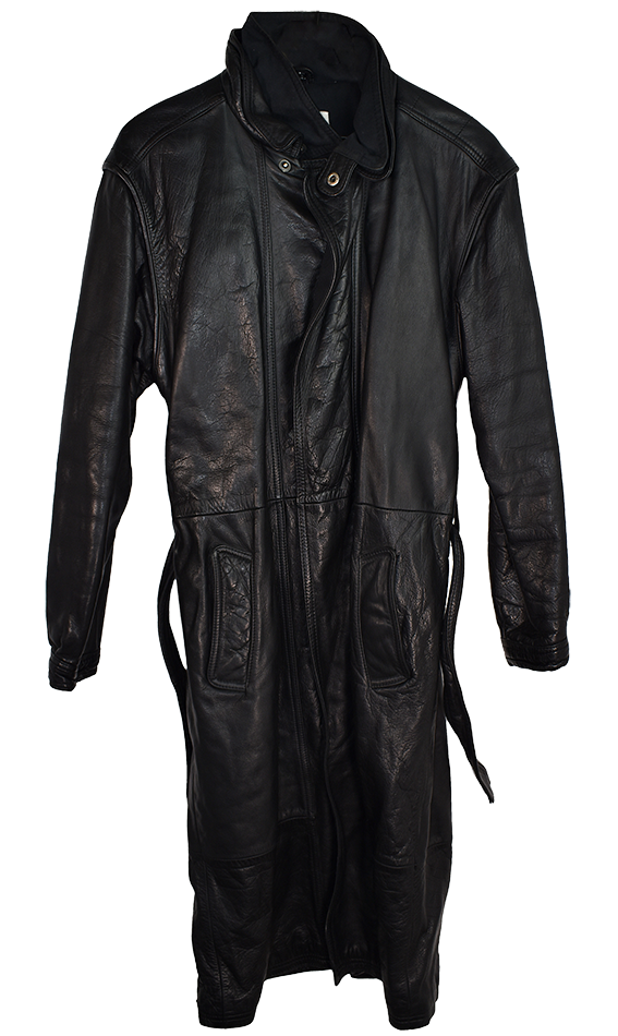 This M. Julian leather trench coat with a leather belt belonged to Steve Clark. Courtesy of the Lorelei Shellist Private Collection.