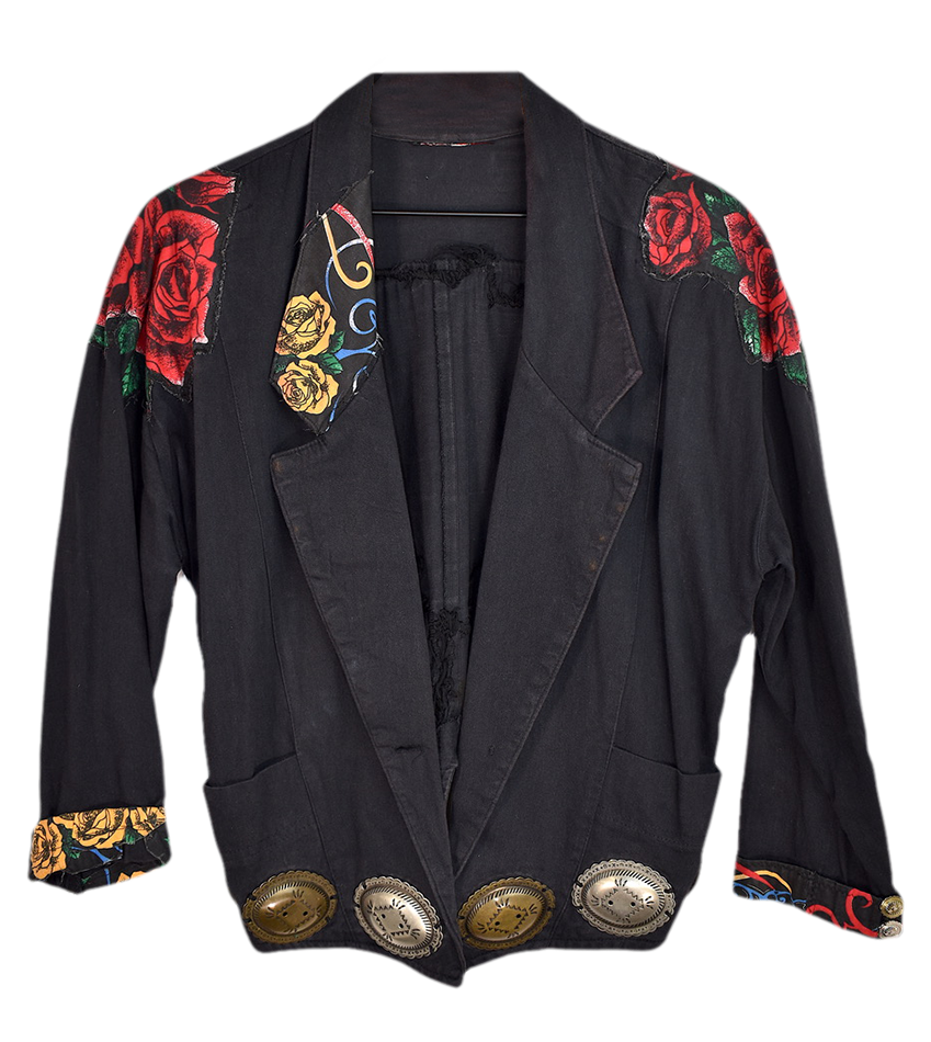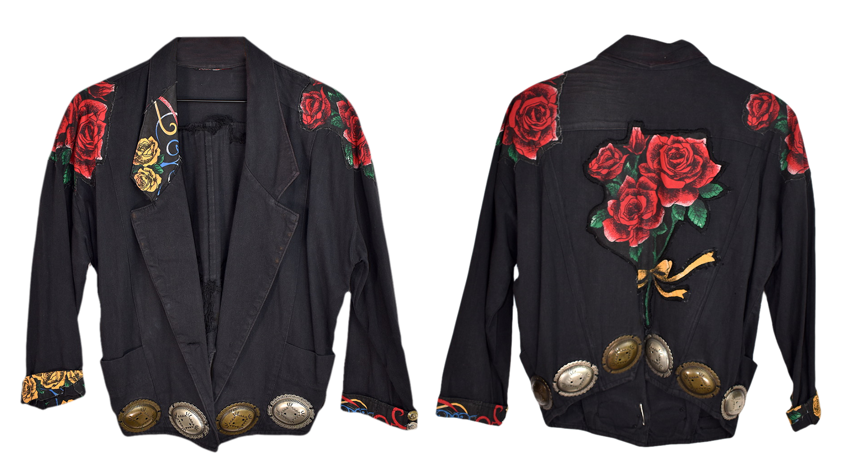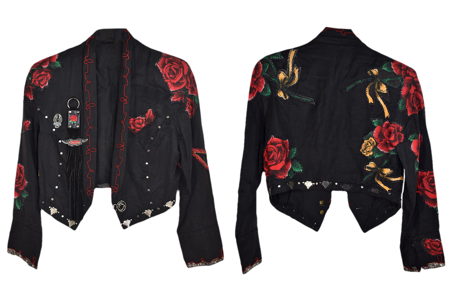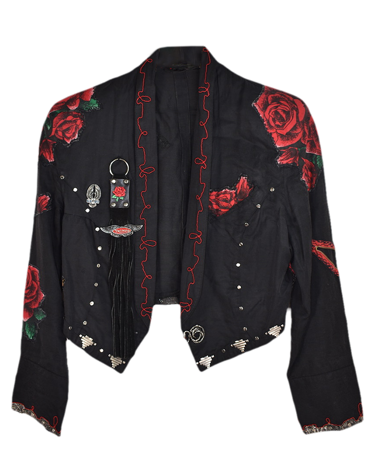 Steve Clark's rose-embellished cropped jacket with metal accents was designed by Lorelei Shellist in the pair's New York apartment. A classic Leppard stage look. Courtesy of the Lorelei Shellist Private Collection.