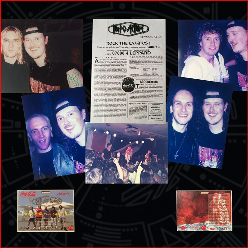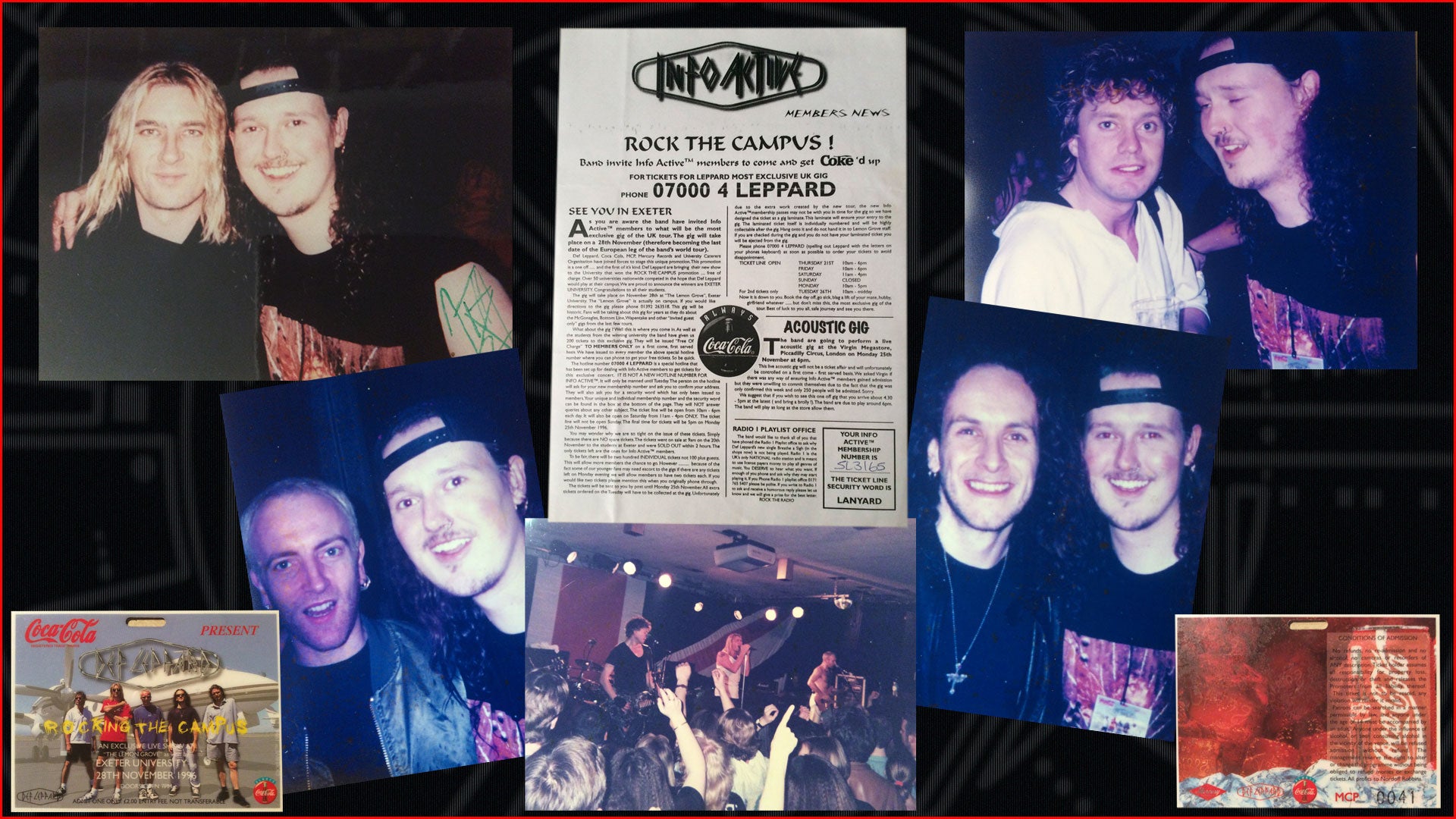 In 1996, there was an exclusive competition, sponsored by Coca-Cola for UK Universities to win a Def Leppard show. The Info- Active Fan Club (formerly the Rock Squad) were giving away tickets to the show on a first come, first served basis. I was very blessed to secure my tickets and travelled from Wales for six hours to the show with my friend Royston.