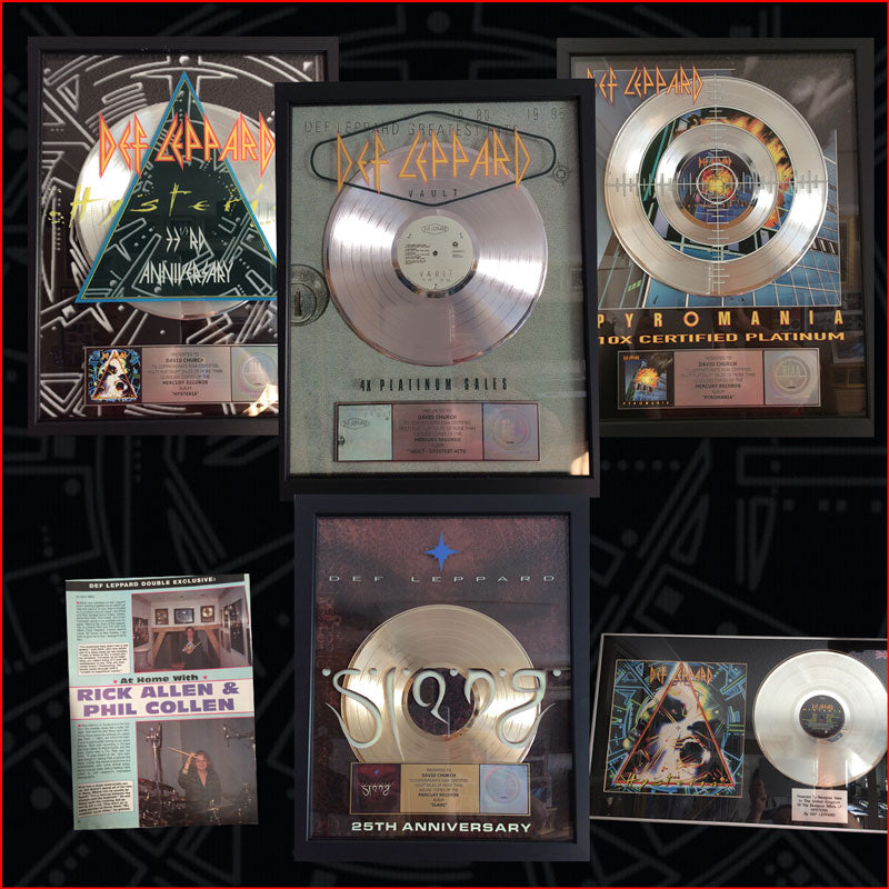 As a teenager, collecting all the UK rock magazines and newspapers I could lay my hands on, I came across an American imported magazine in Hit Parader. One issue had an “At Home with Phil and Rick” feature. I was mesmerized by the platinum discs on Rick’s wall and began the dream of one day owning one for my own future home.