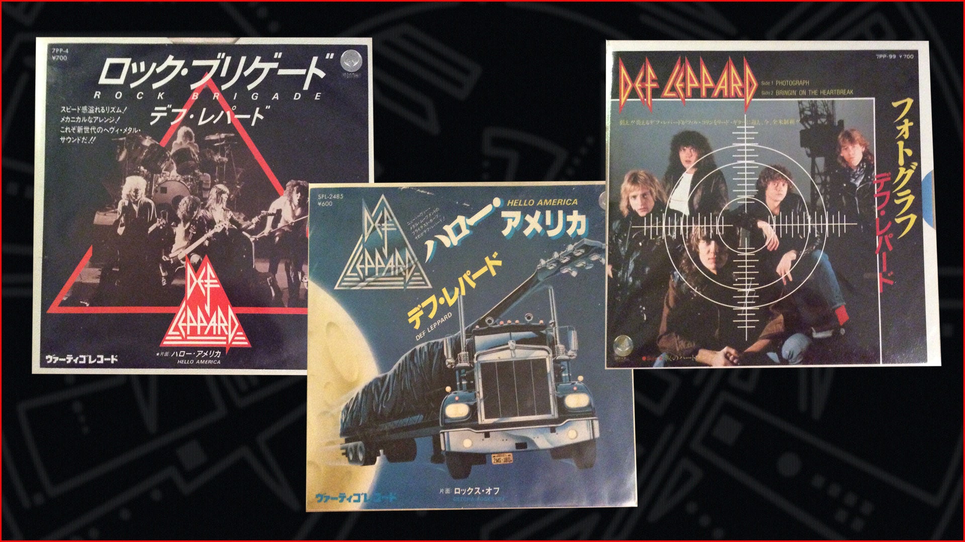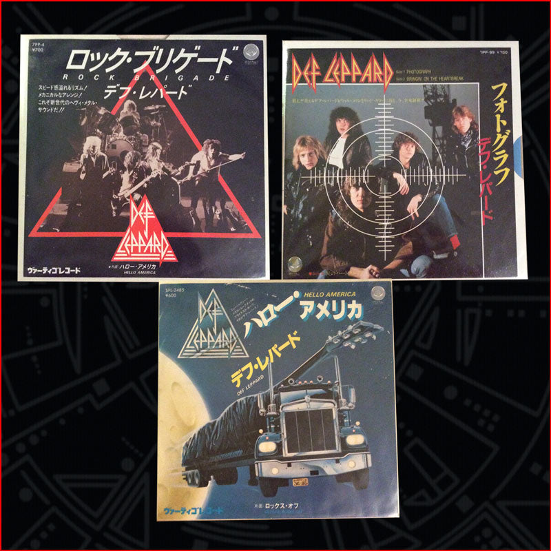 What can you say about these Japanese 7” vinyl covers, other than they are stunning! Amongst the collection, with the actual numbers pressed rumoured to be very low, there are four singles that are particularly sought after by collectors worldwide. These include “Hello America” (with Joe’s name misspelt with only one ‘t’), “Rock Brigade”, “Armageddon It” (with the misspelling of “Atomic”), and “Pour Some Sugar On Me”. “Love Bites” is also a prized addition to any collection, as it was the last commercial Def Leppard 7” vinyl produced in Japan.