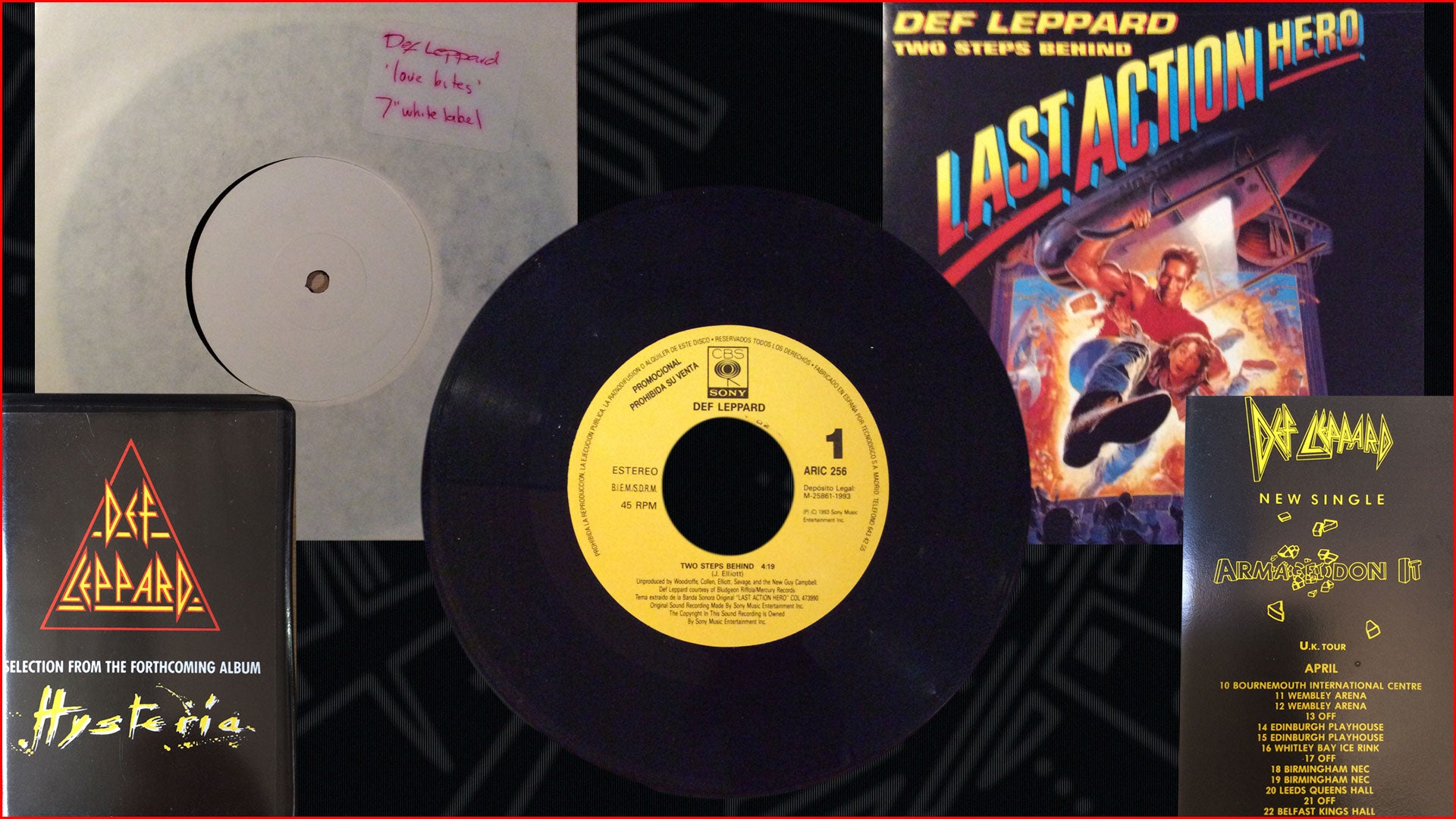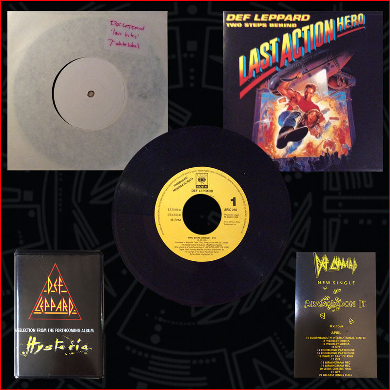 Amongst my other most favourite promotional finds, I have discovered tape cassettes for the Hysteria album and “Armageddon It” single, the Hysteria press release booklet, the “Rock of Ages” 1989 CD sampler, the 1992 CD sampler and CD interview discs for the “Retro-Active”, “Vault” and “X” albums. I found the Spanish promotional 7” vinyl for “Two Steps Behind” from the movie “Last Action Hero” at a car boot sale for a very reasonable price and was an incredibly happy young man.