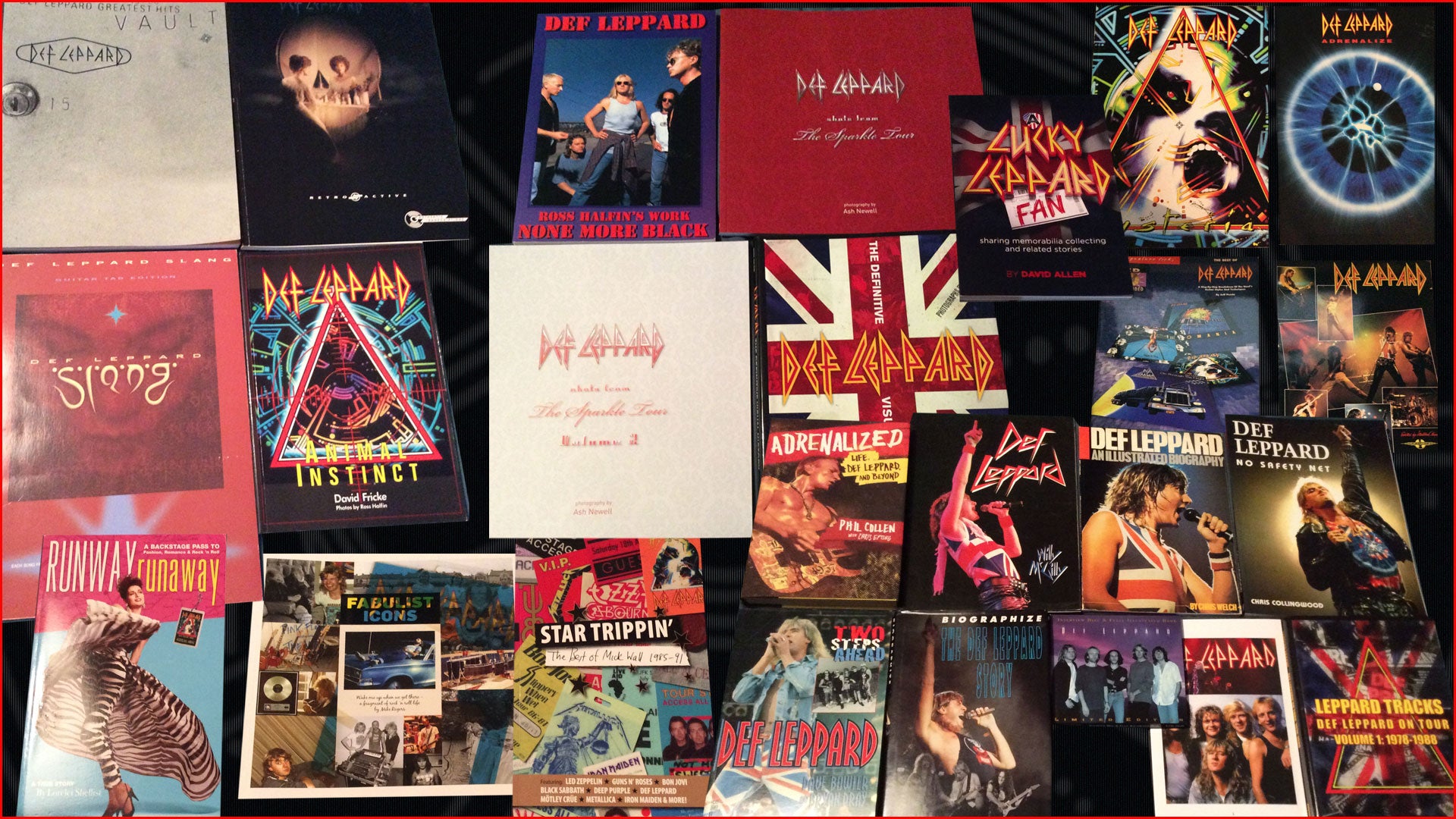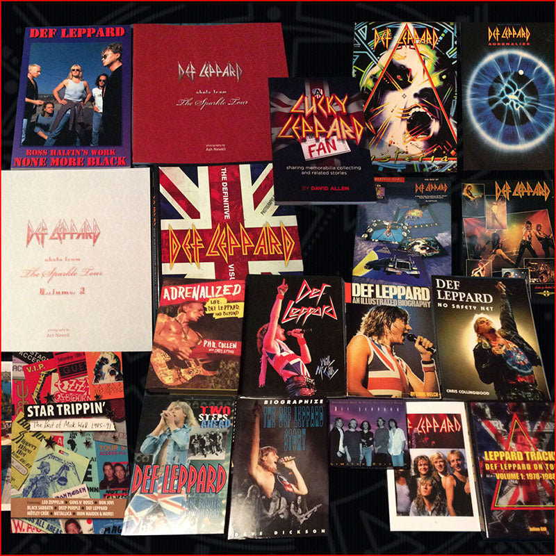 I have collected every book that I have come across over the years, whether it is an official release, unofficial release or Def Leppard-related in some way. Amongst my favourites are: The Definitive Def Leppard Visual History by Ross Halfin, Songs From The Sparkle Lounge – Volumes 1 & 2 by Ash Newell, Fabulist Icons by Mike Rogers (former guitar tech on the Pyromania Tour), and A Lucky Leppard Fan by David Allen. For me, Allen’s book has been a tremendously inspiring and uplifting read. Being introduced to each other through the Vault forum, David and I have recognized the kindred spirit in each other (as collectors and fans) and have become firm friends in the Def Leppard community.