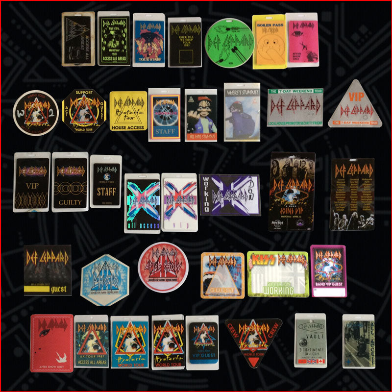 The first Def Leppard laminate I ever owned was my Rock Squad fan club membership laminate. I have forty-four in my collection (forty pictured here). The four not pictured are the London to Vegas laminates available with the super-deluxe box set and two Meet N’ Greet passes from the 2018 Hysteria & More UK/Eire Tour (these are in different displays in my memorabilia collection frames). The vast majority of these are official genuine passes and there are seven replicas. I wonder if your eagle eye can spot these replicas?