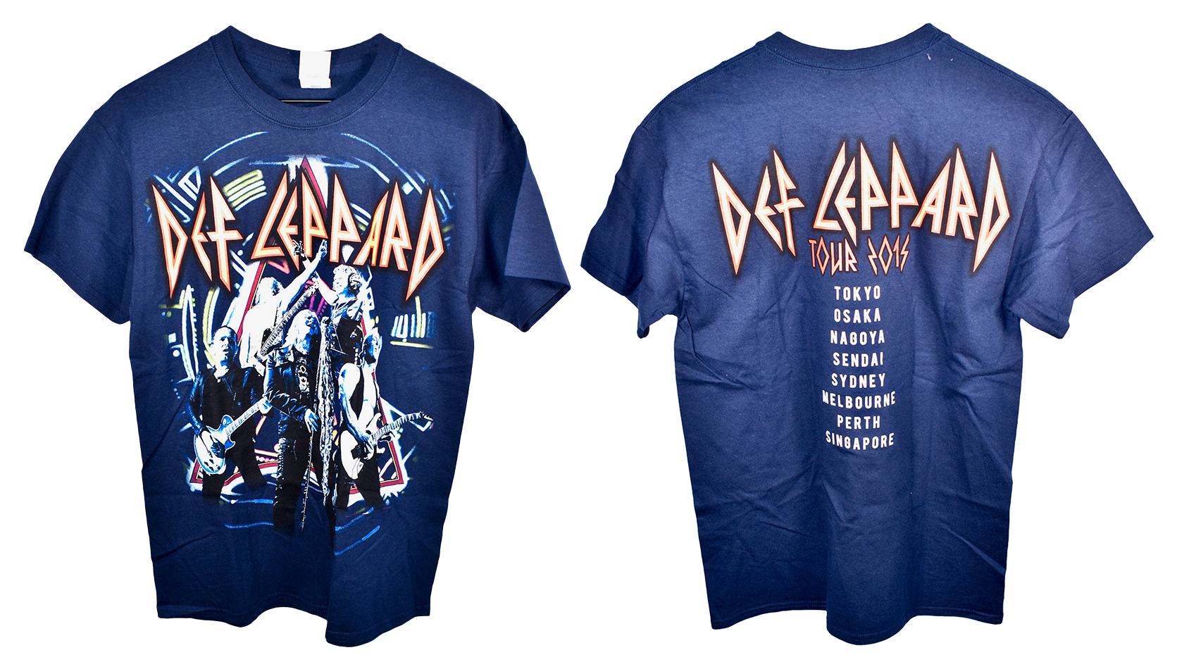 Let's go! This blue "Back By Popular Demand" Tour 2015 t-shirt marks the leg that took the band to roaring crowds in Tokyo, Osaka, Sendai, Sydney, Melbourne, Perth, and Singapore. From the collection of Def Leppard.