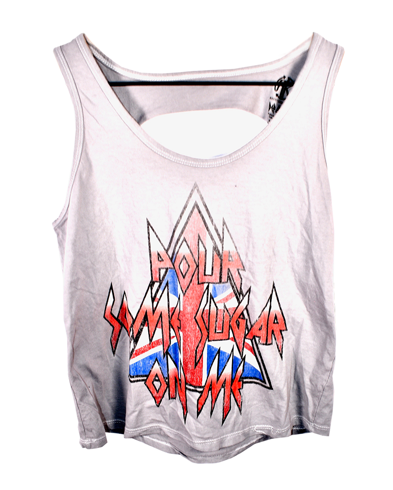 Put that tank top on me! A tribute to the Def Leppard single of the same name, this Pour Some Sugar on Me gray tank features a Union Jack design inside of a Hysteria-style triangle and Def Leppard font. From the collection of Def Leppard.
